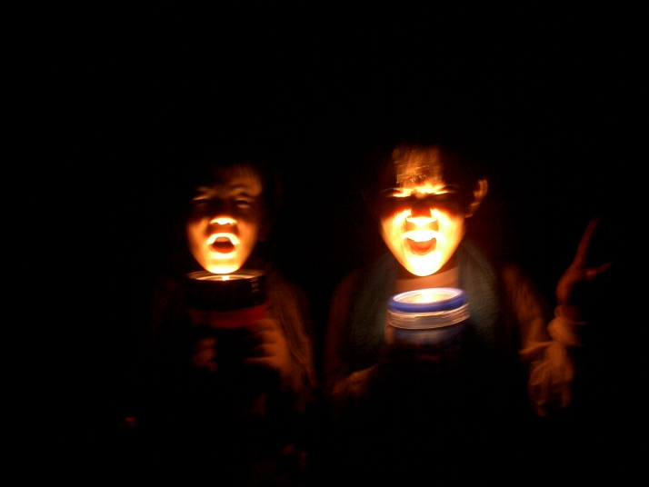 「ライトを上にむけたらカブトくるかも!」、「UFOきたらどうする!?」 |